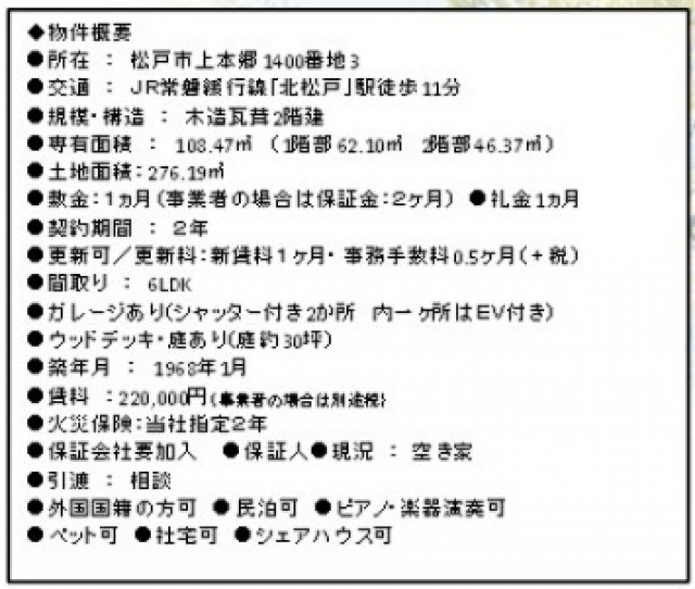 ●ペット可 ●社宅可 ●シェアハウス可